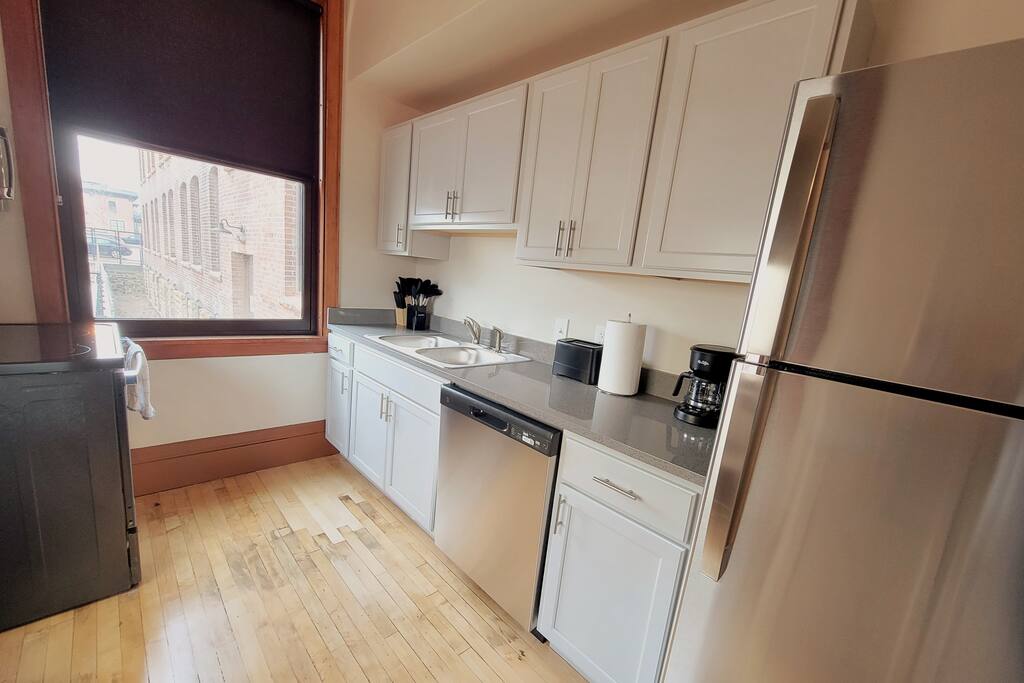 This studio comfortably sleeps 2 people on a king size bed. Spacious open area offers original flooring, high ceilings, large windows with lots of natural light, and tons of character. Our modern kitchen boasts granite countertops and stainless-steel appliances. Convenient in unit washer and dryer are provided. Wi-Fi and secured bike storage included. In walking distance to local attractions, coffee shops, restaurants, brewery, bars, movie theater, parks and walking/biking trails, Mississippi River, Winona State University and more! Have a larger group? Rent more than one room at a time. The whole first floor and part of the second floor are short-term rentals! To view other listings simply click on our profile and see 'other listings'.